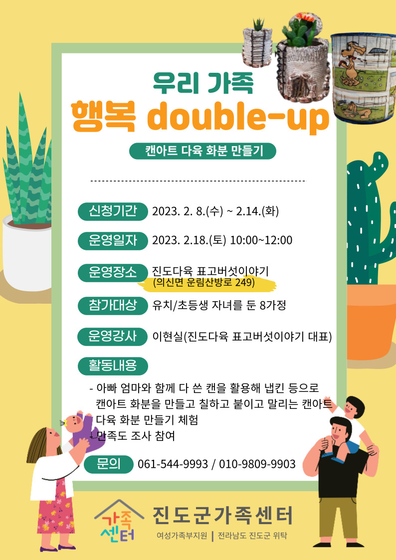 가족센터 - 가족 사랑의 날 1회기 프로그램 - 우리 가족 행복 double-up(캔아트 다육 화분 만들기) 참여자 모집
