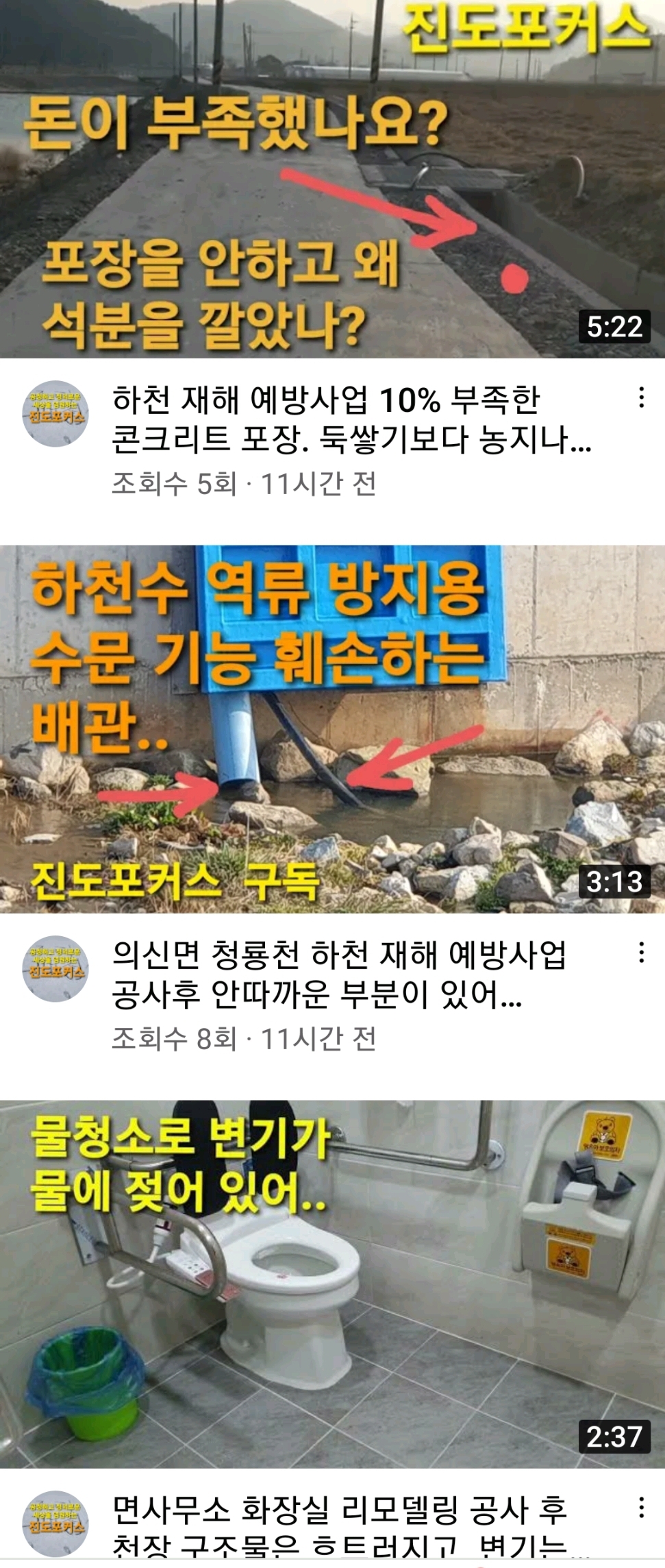 홍수 대비 하천재해예방사업 하천 둑 높이고 다리 높인다고 해결할 수 없습니다. 역류방지 수문 기능 훼손 방치히는 괁리 부실까지.. 총체적 난국 혈세낭비.. 진도 소식은 진도포커스 유튜브 검색창에서 만나실 수 있습니다 건강하시고 행복하시길 바랍니다.
