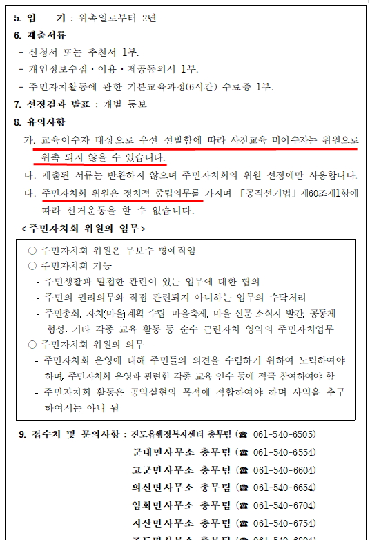 본인은 이미 위촉된 주민자치위원으로서
