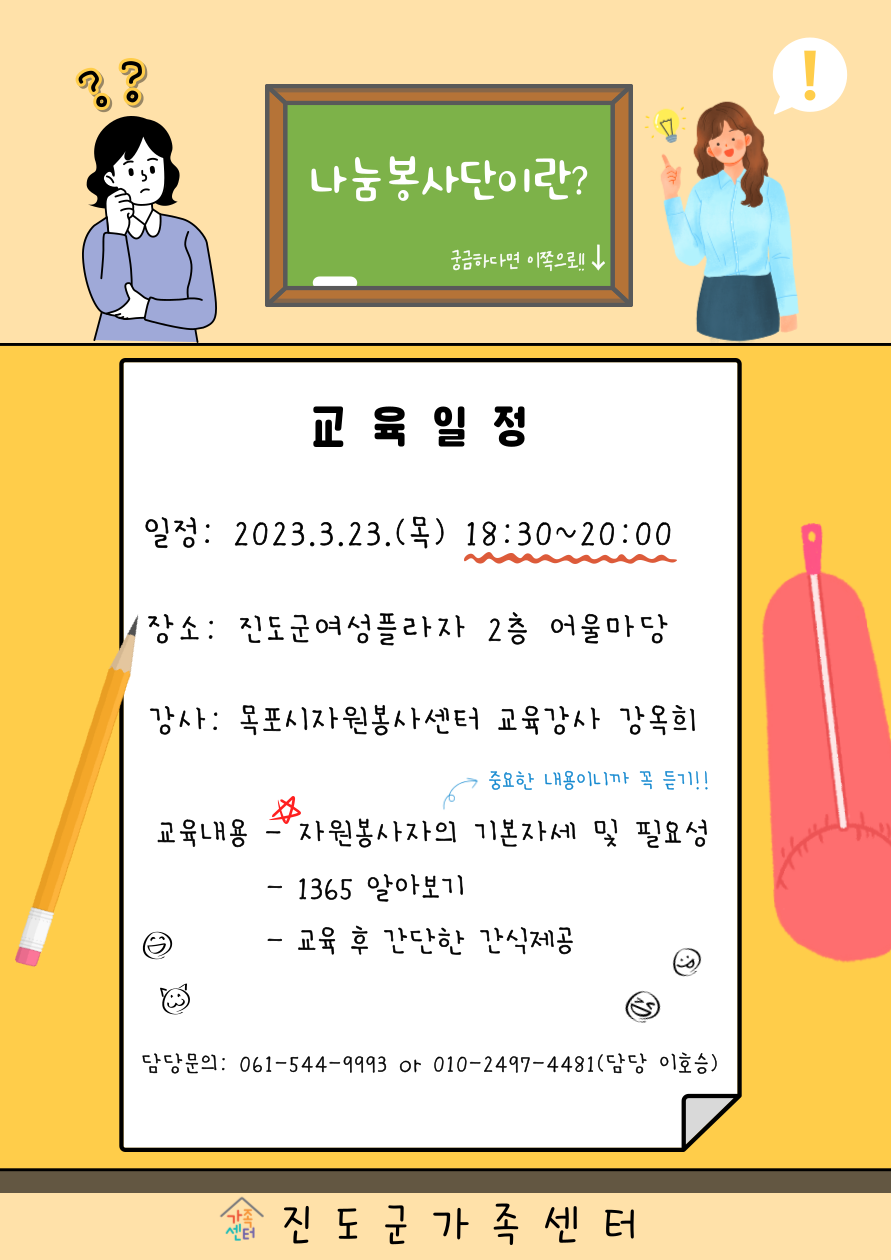 진도군가족센터 가족나눔봉사단 1회기 교육일정
