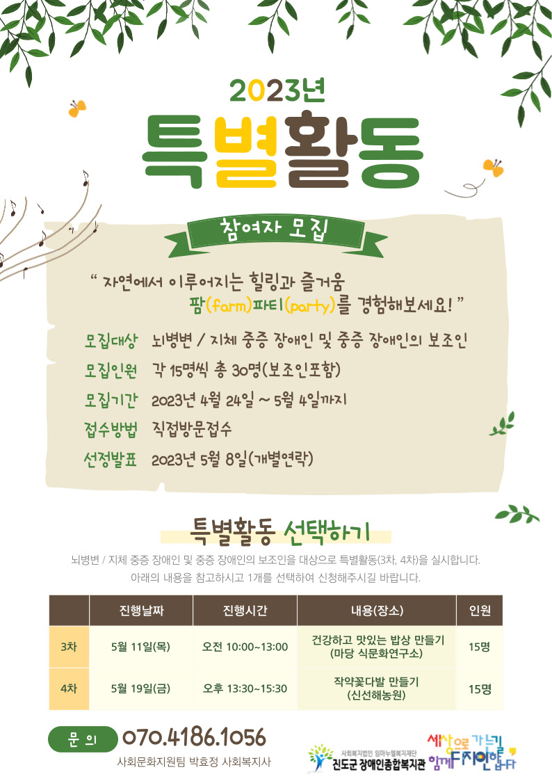 진도군장애인종합복지관 '특별활동' 참여자 모집