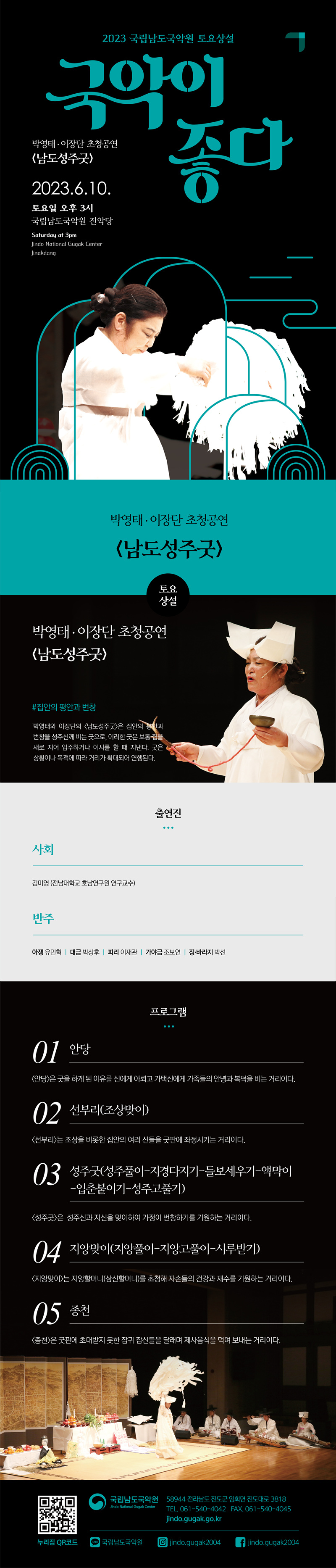 6월 첫 번째 토요상설 <국악이 좋다>는 박영태·이장단 초청공연 <남도성주굿>입니다.