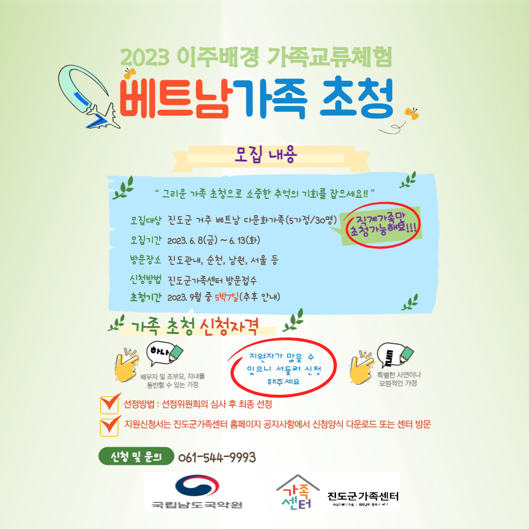 ❤️진도군가족센터❤️2023년 이주배경 가족교류체험(2차 베트남 가족초청)모집 재공고