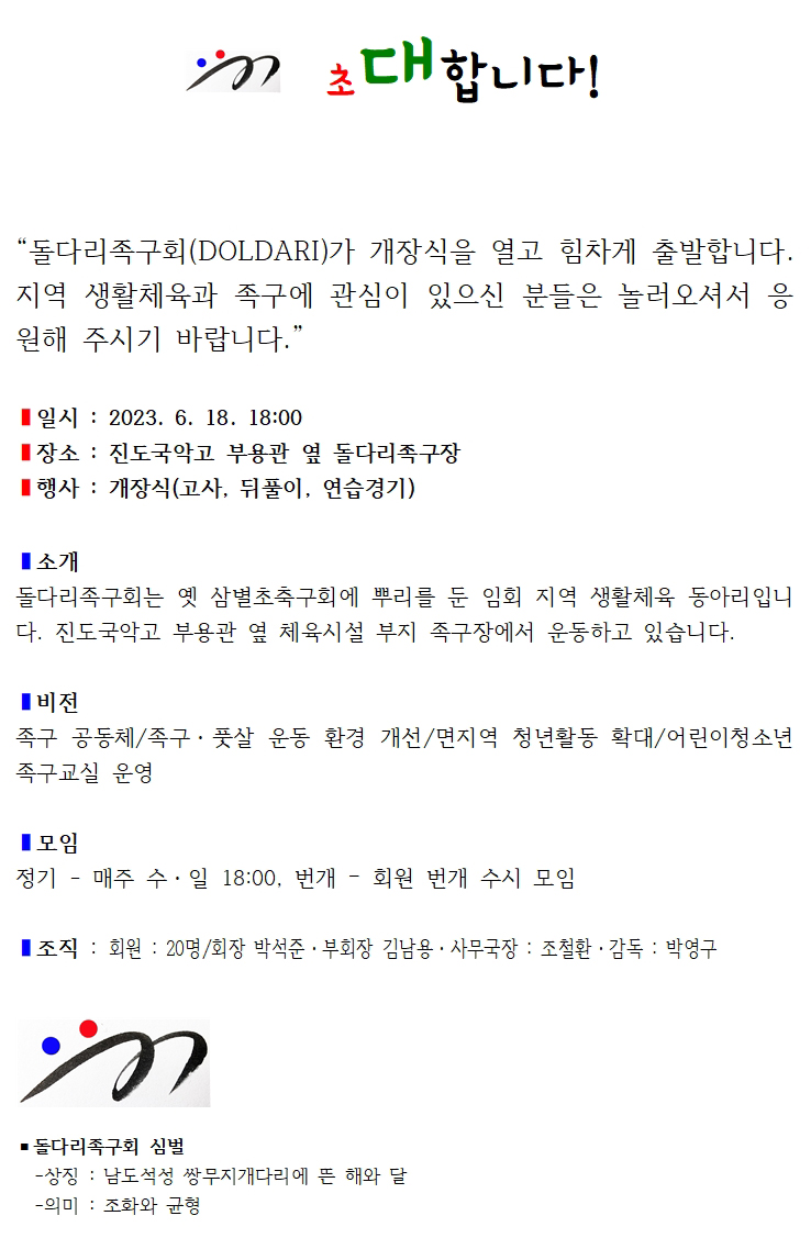임회-돌다리족구회 족구장 개장식에 초대합니다