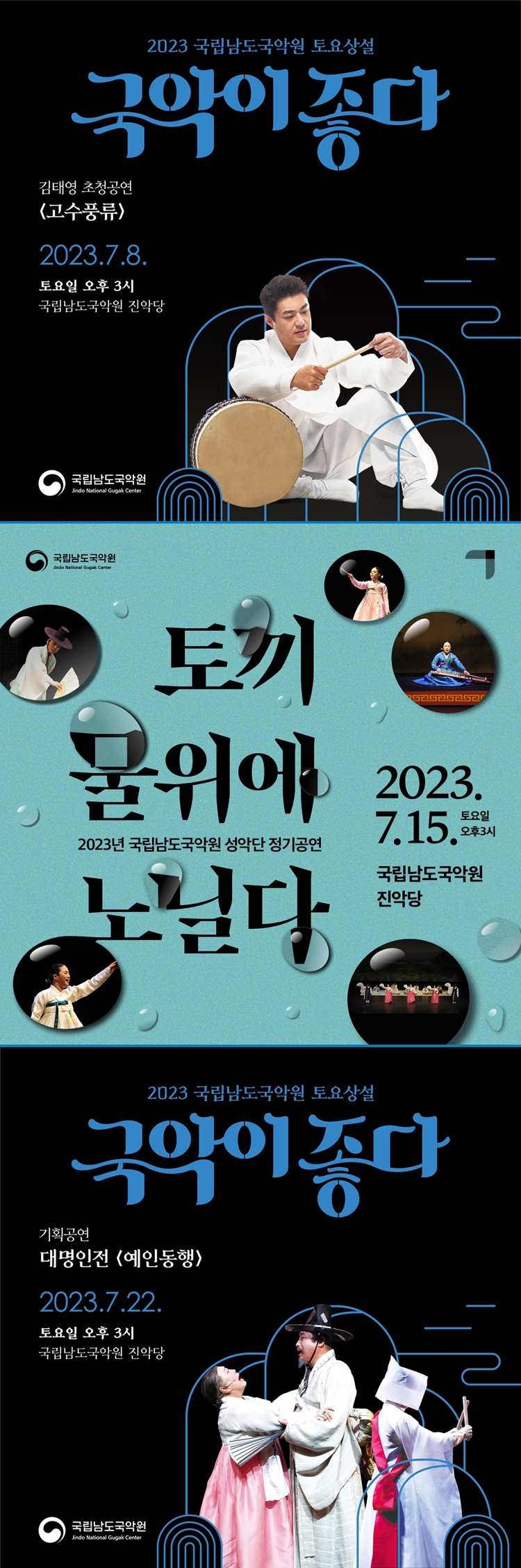 7월 매주 토요일 오후 3시, 국립남도국악원에서는 다양한 장르의 공연을 만나보실 수 있습니다.