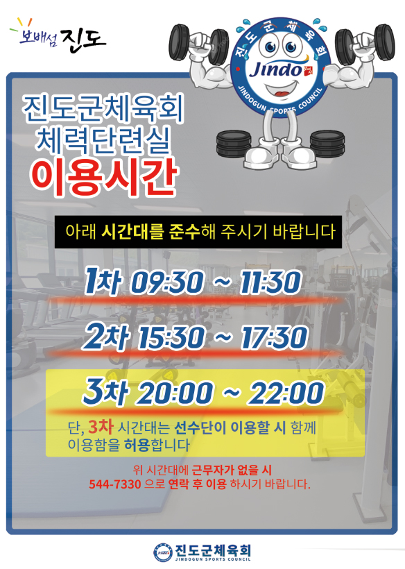 진도군체육회 체력단련실 이용시간 확대 안내