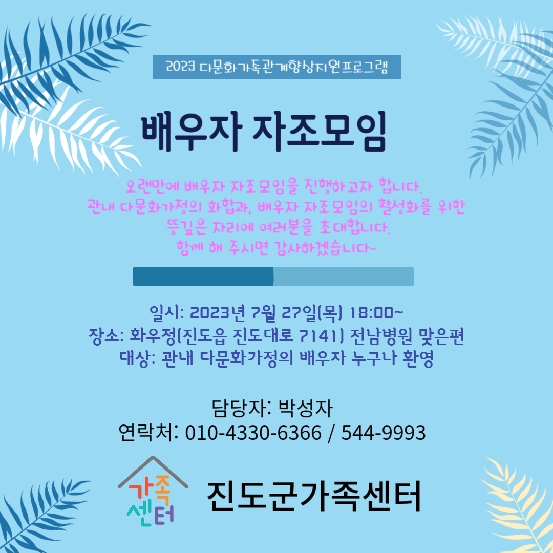 ❤️진도군가족센터❤️2023년 배우자 자조모임 안내