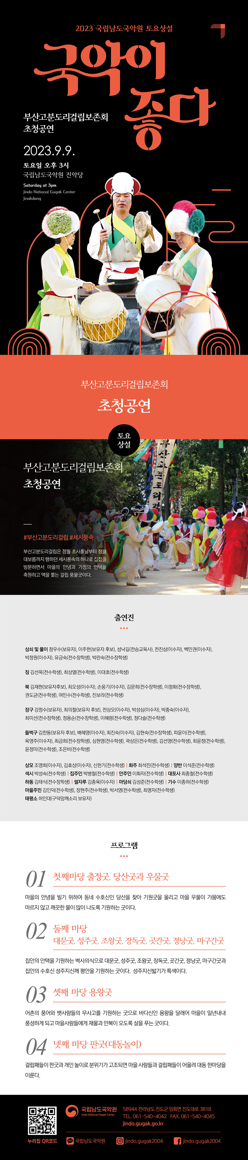 ▶ 국립남도국악원 누리집 바로가기 http://jindo.gugak.go.kr