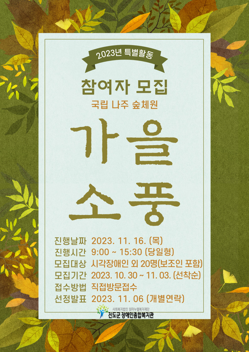 진도군장애인종합복지관 특별활동 참여자 모집(나눔의 숲 캠프)