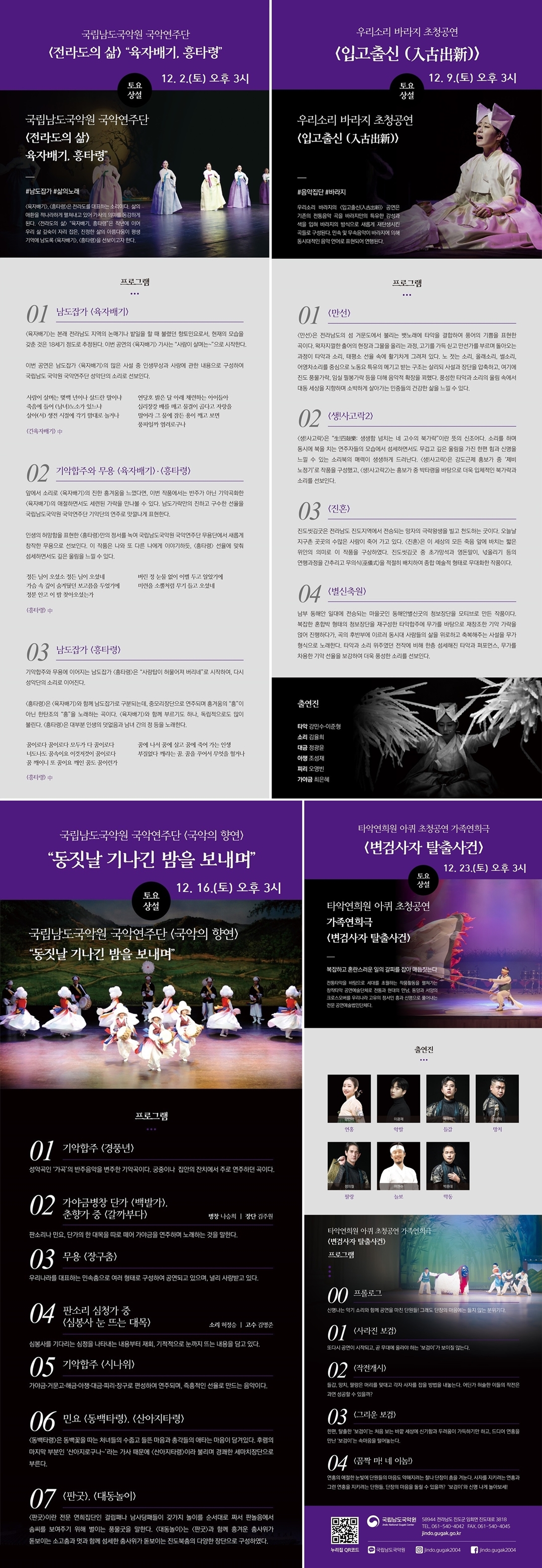 추워진 겨울 12, 국립남도국악원이 준비한 공연으로 따뜻한 겨울 보내세요~