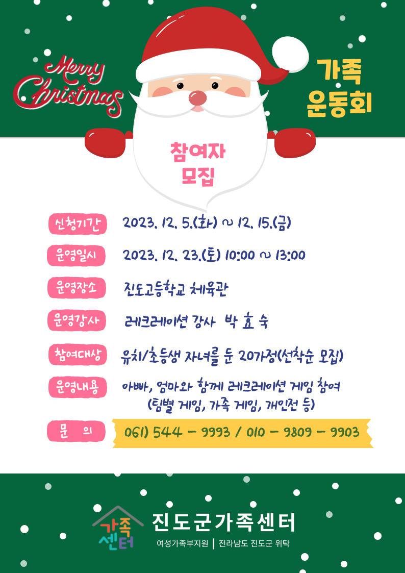♣가족센터♣ 'merry christmas 가족 운동회' 참여자를 모집합니다!!