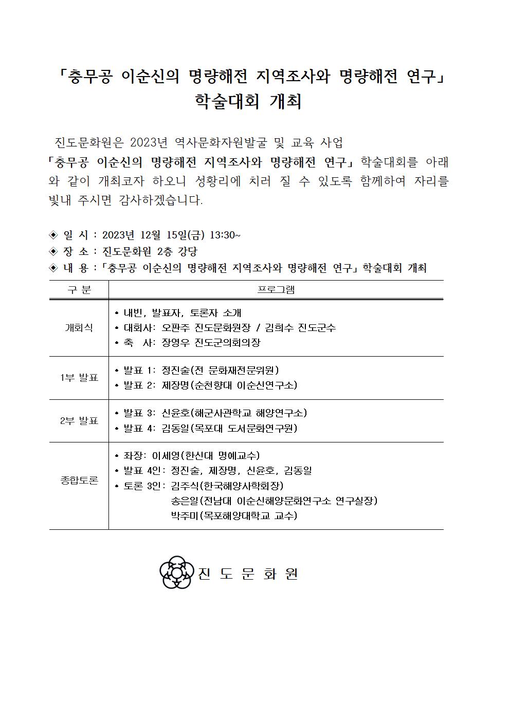 Re : 진도문화원 「충무공 이순신의 명량해전 지역조사와 명량해전 연구」학술대회 개회