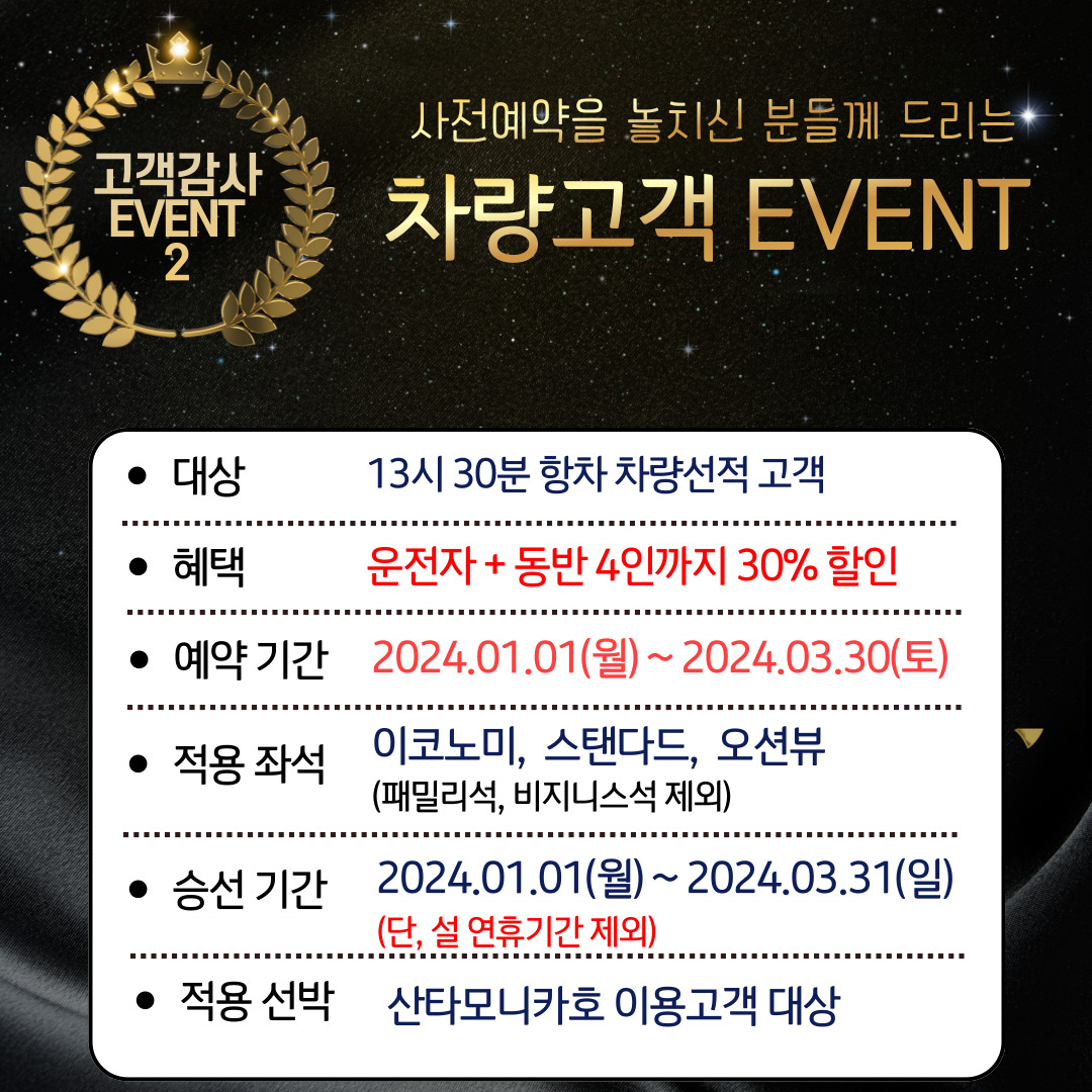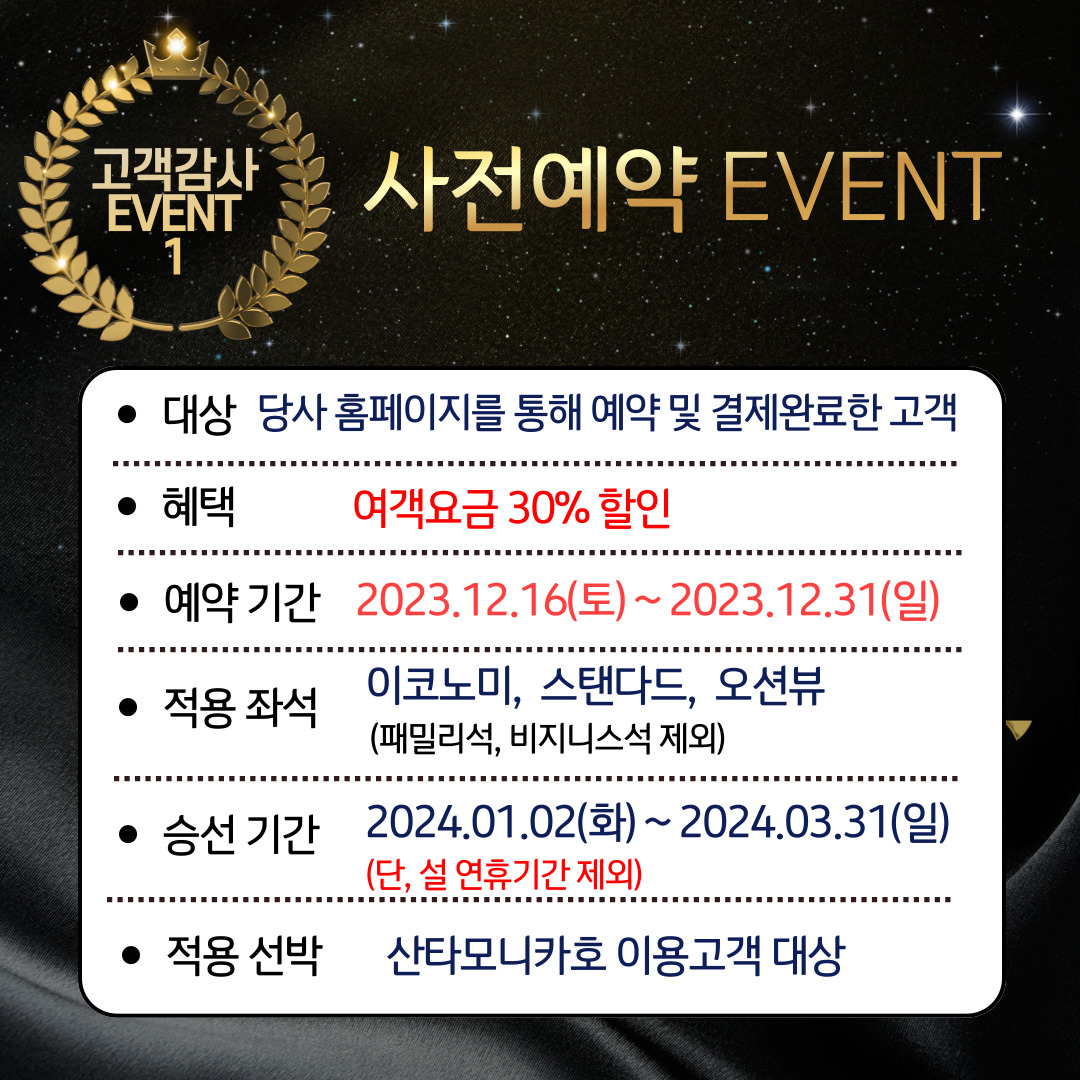 24년 산타모니카 우수선박 선정 기념 사전예약 EVENT !