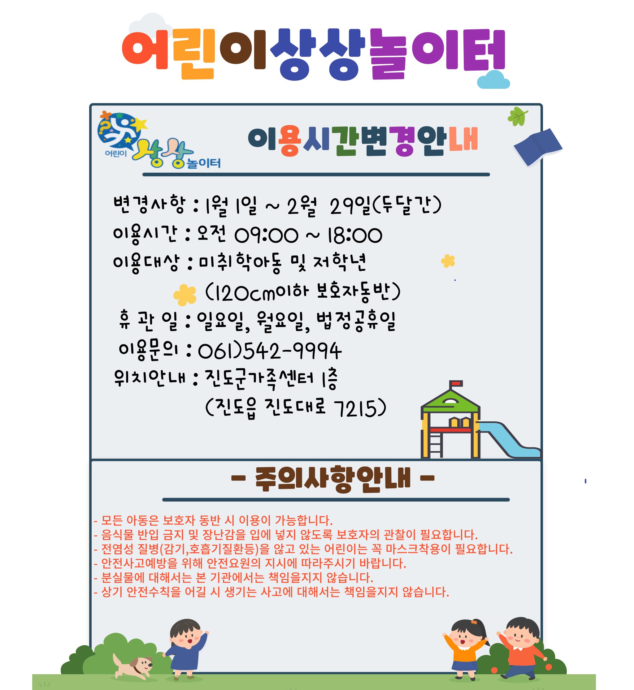 ★ 진도군가족센터내 1층 어린이상상놀이터 이용시간 변경안내 ★
