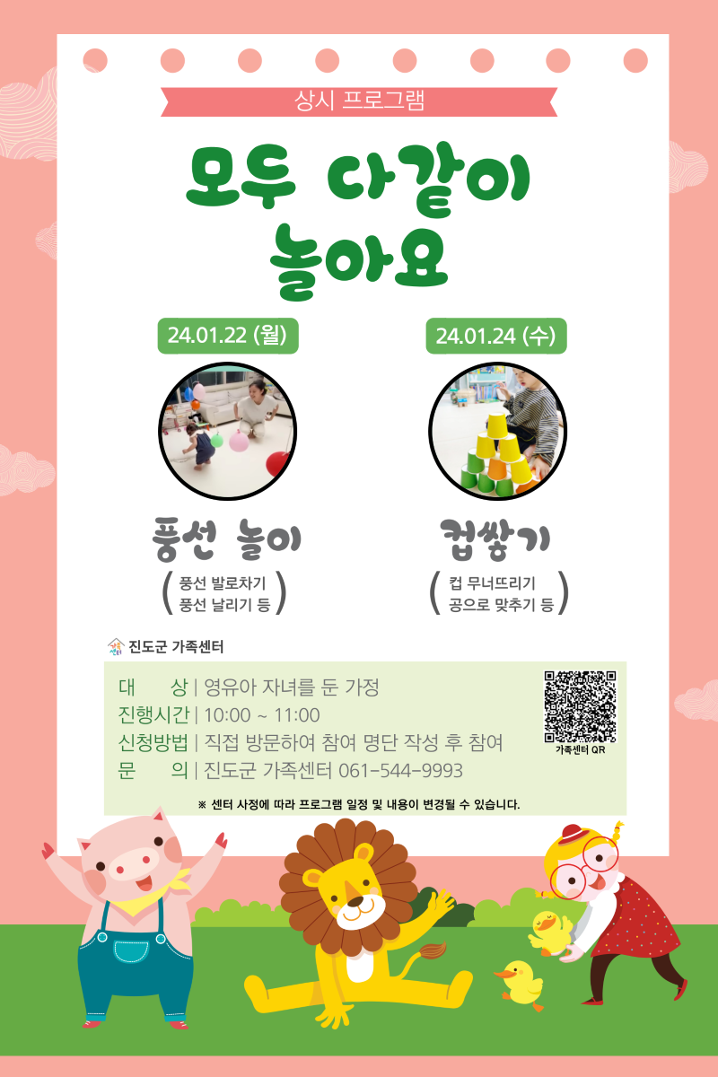 진도군 가족센터 공동육아 나눔터 상시프로그램 안내