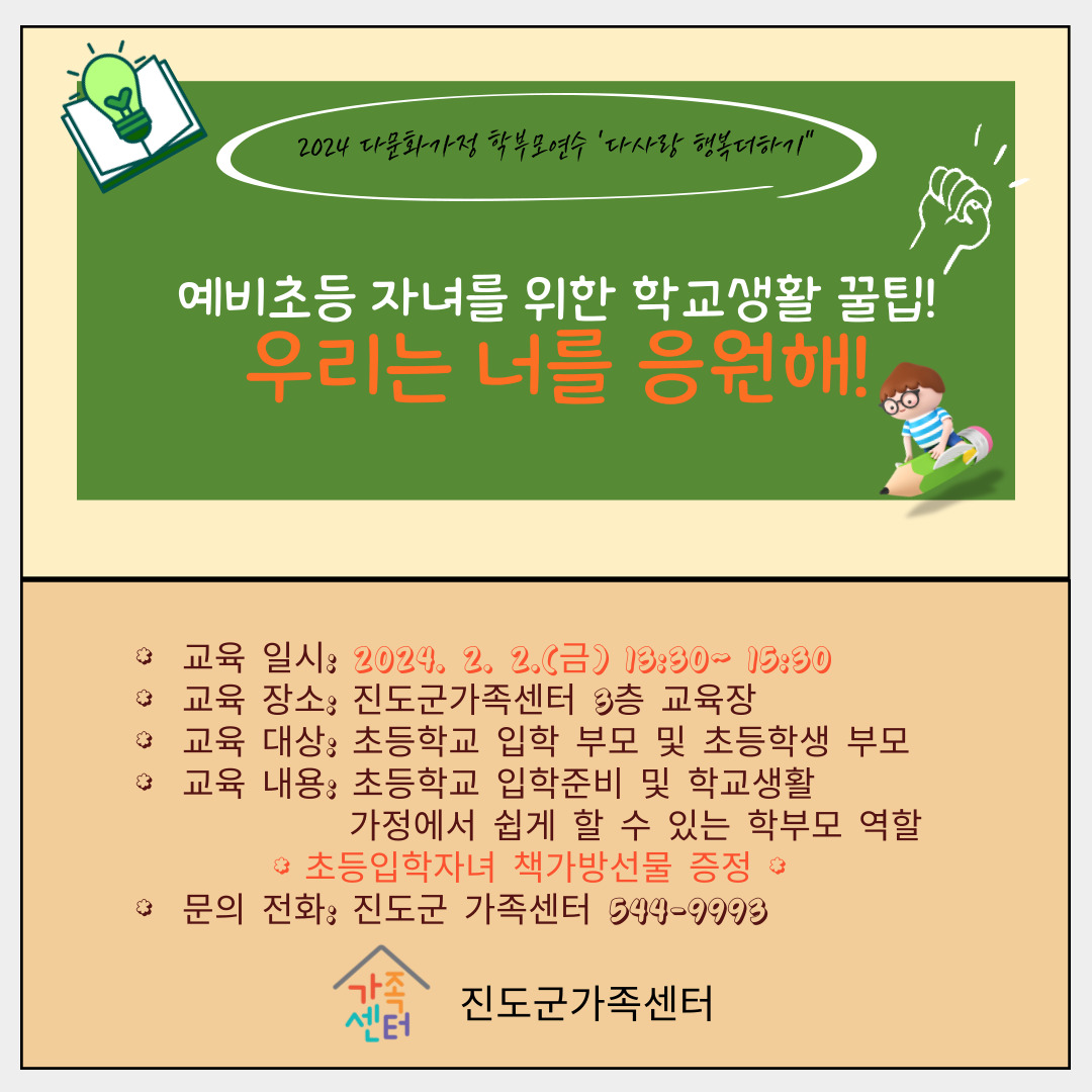 ❤️진도군가족센터❤️ 다문화가족 학부모연수 참여 안내