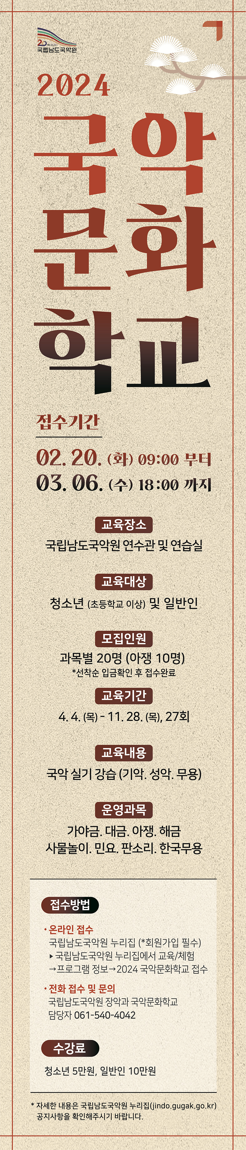 [국립남도국악원] 2024 국악문화학교 수강생 모집