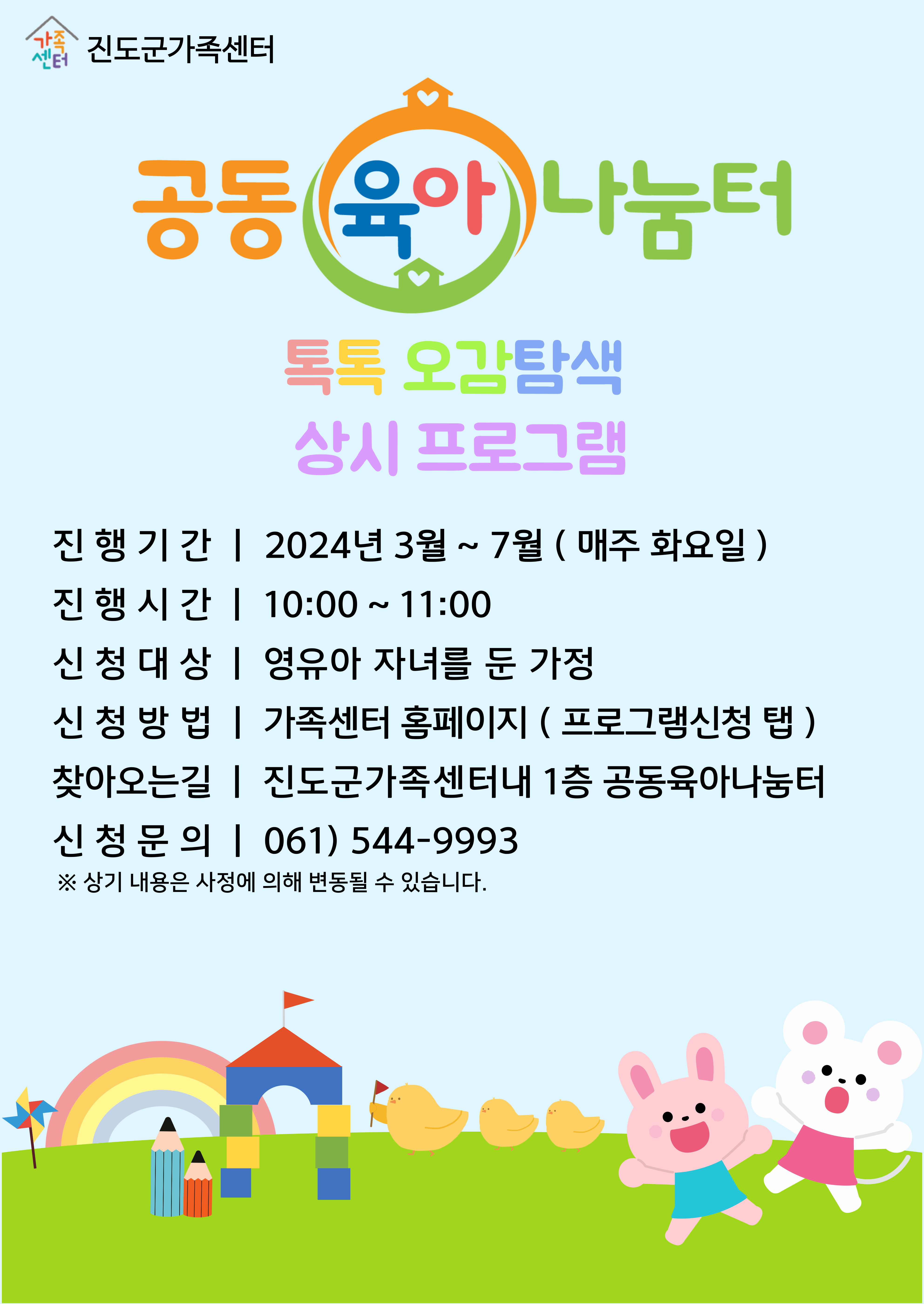 진도군가족센터 공동육아나눔터 톡톡 오감탐색 프로그램 안내