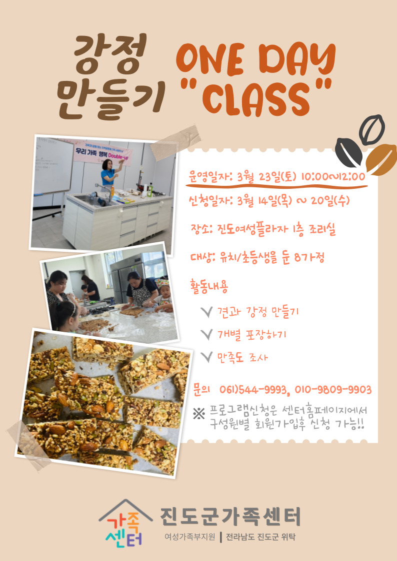 ♣가족센터♣ 가족 사랑의 날, 최고 멋진 날 - 견과 강정 만들기 ONE DAY CLASS ~!! 참여자 모집