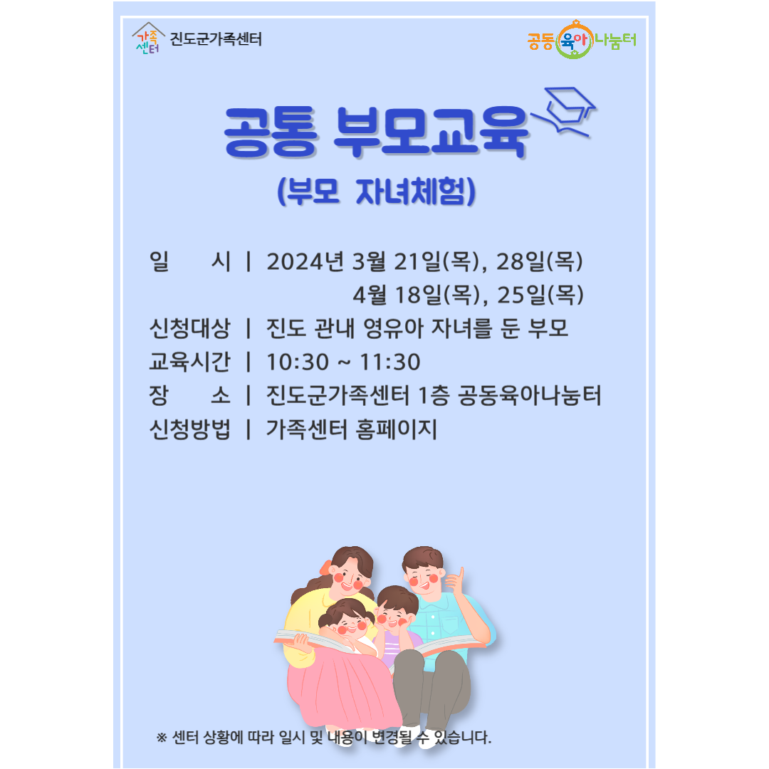 진도군가족센터 부모자녀체험 프로그램 홍보안내