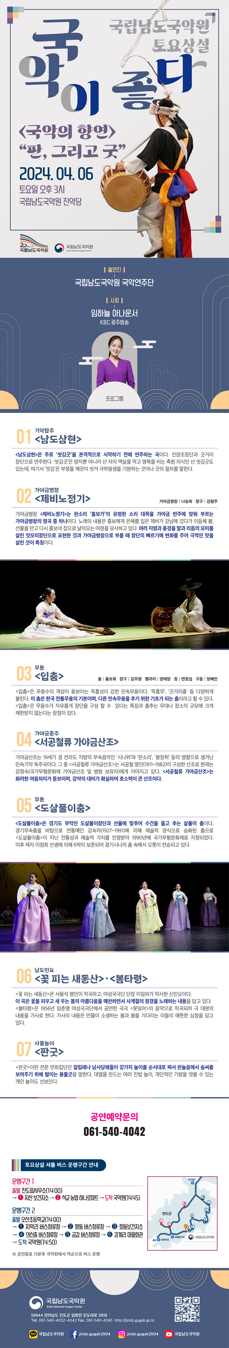 ▶ 국립남도국악원 누리집 바로가기 http://jindo.gugak.go.kr