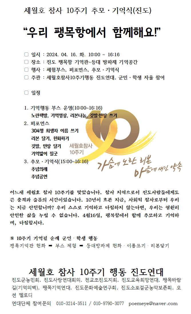 세월호 참사10주기 추모 기억식 - 팽목항에서 함께해요!