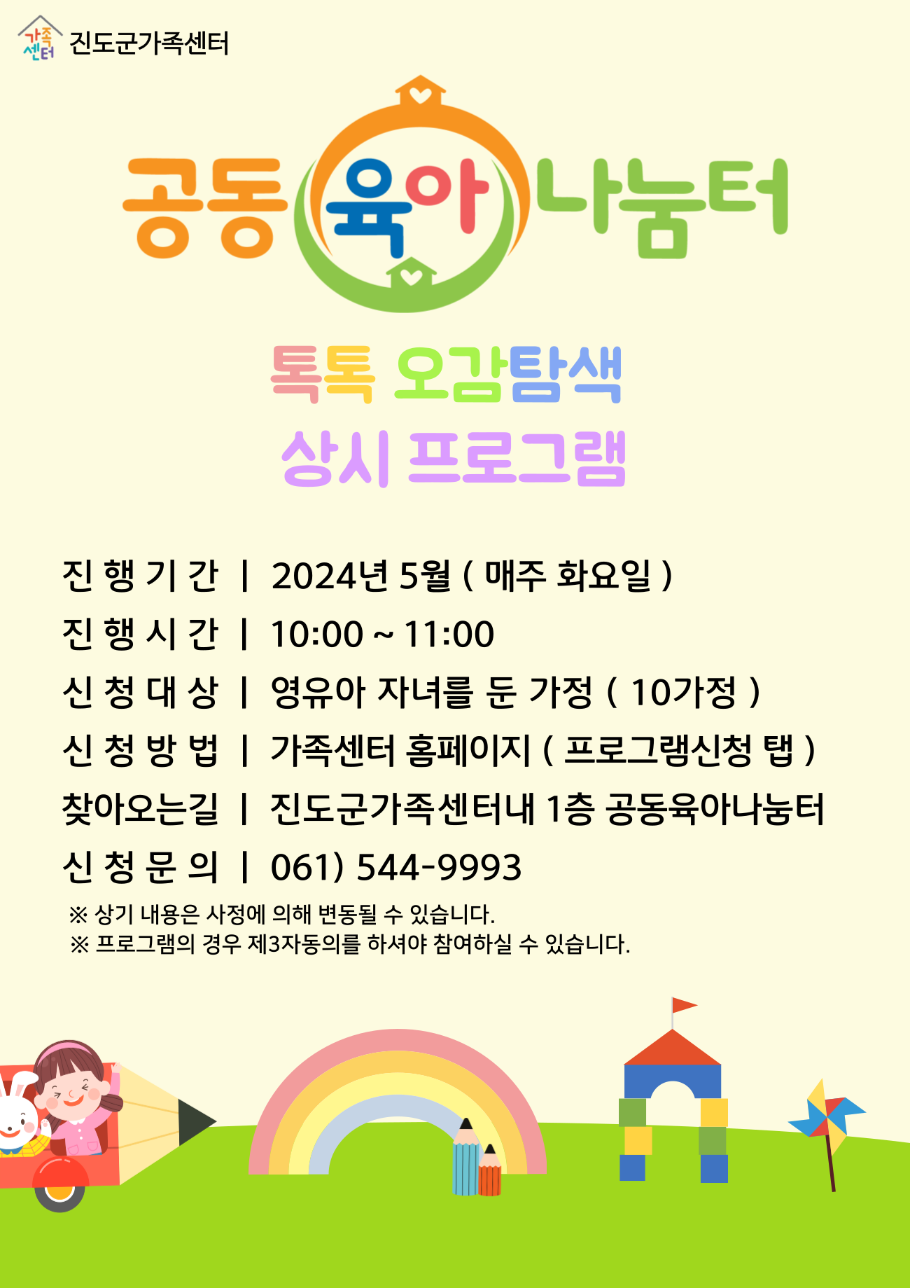 공동육아나눔터 톡톡 오감탐색 상시프로그램 참여자 모집