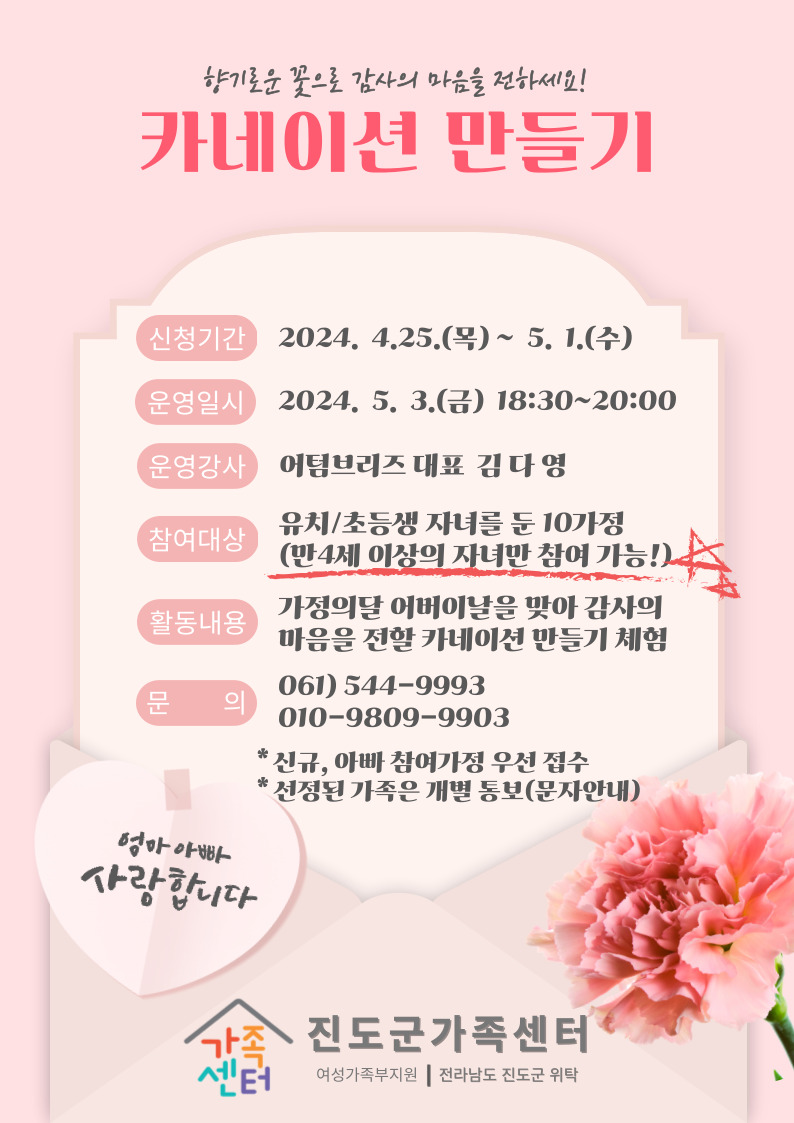 ♣가족센터♣ 가족 사랑의 날 - 카네이션 만들기 참여자 모집 조기 마감되었습니다.