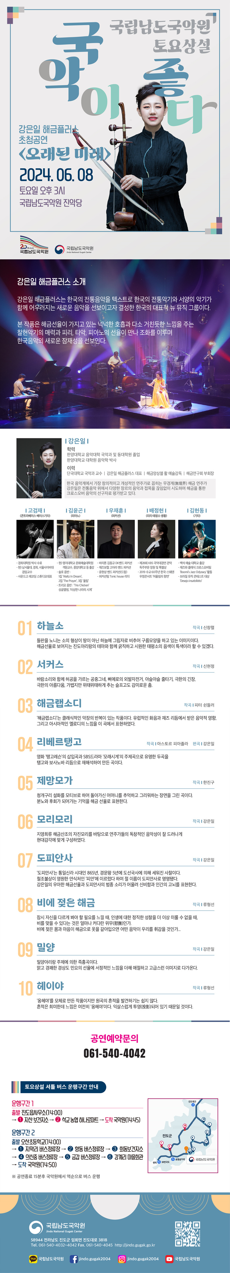 국립남도국악원에서 강은일 해금플러스의 음악으로 무더워지는 초여름의 주말을 시작해보는 건 어떨까요?