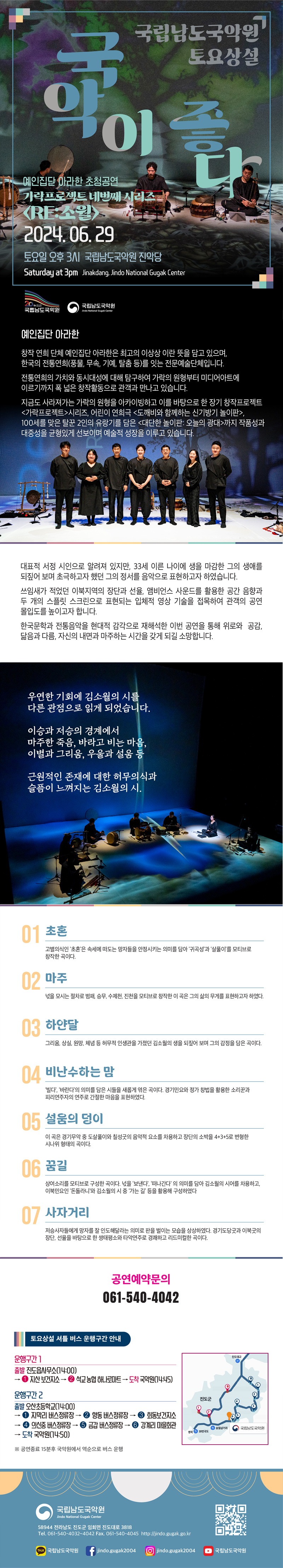 ▶ 국립남도국악원 누리집 바로가기 http://jindo.gugak.go.kr