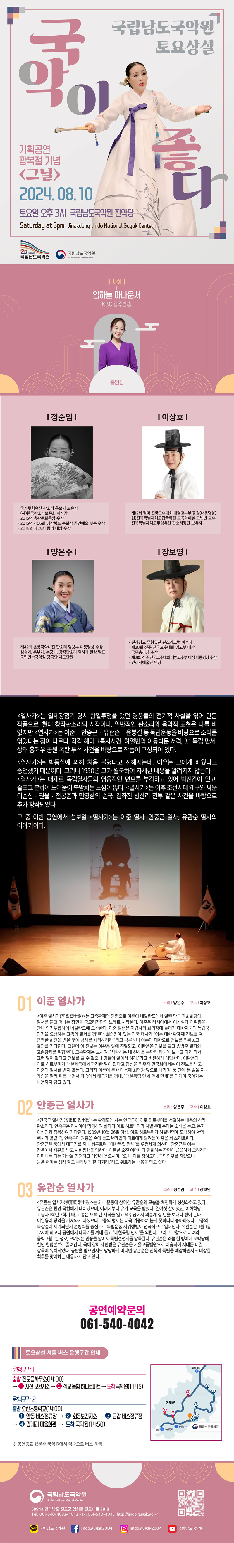 ▶ 국립남도국악원 누리집 바로가기 http://jindo.gugak.go.kr