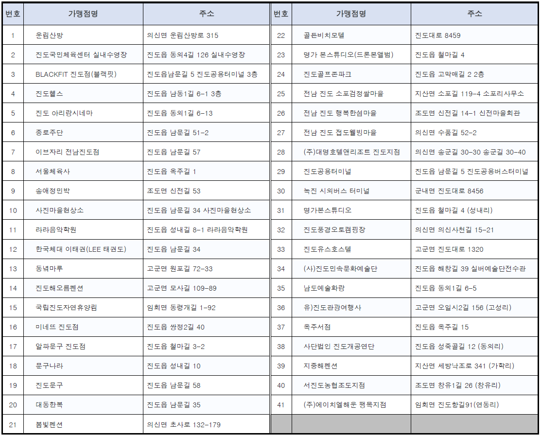 ● 진도군 사용가능 가맹점은?