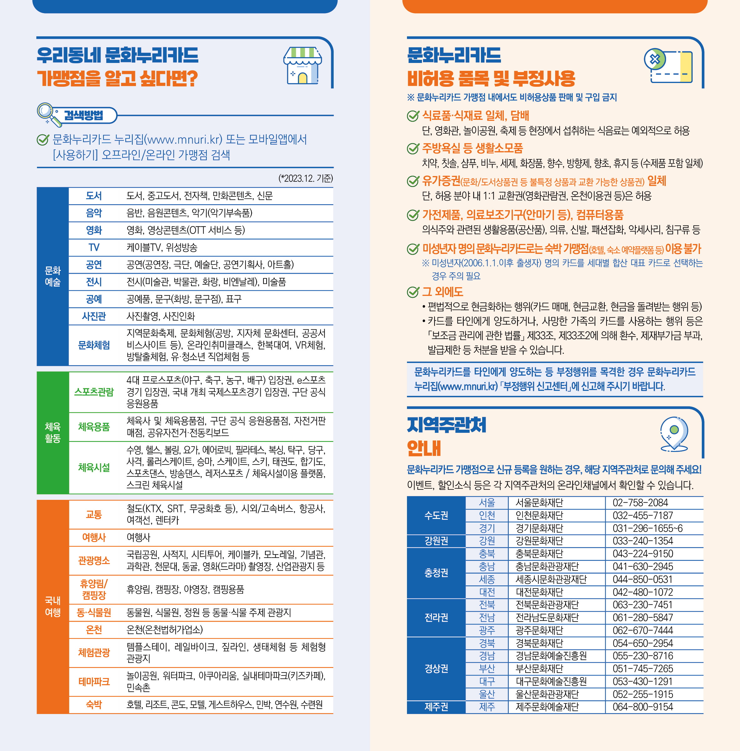 ◎ 문화누리카드는 어디에서 사용할 수 있나요?