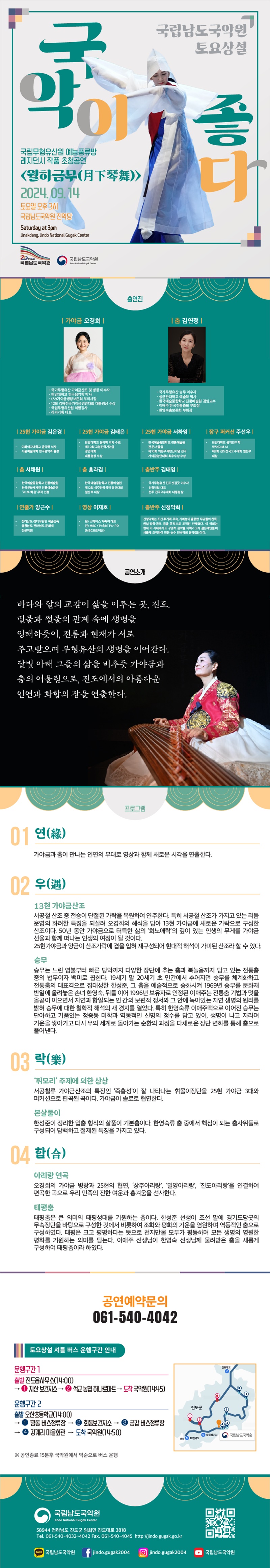 ▶ 국립남도국악원 누리집 바로가기 http://jindo.gugak.go.kr