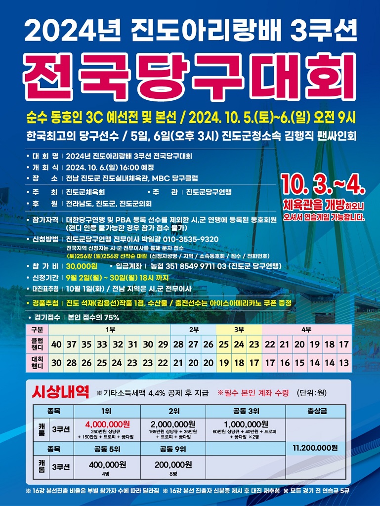 제목 진도아리랑배 3쿠션 전국당구대회 안내~~