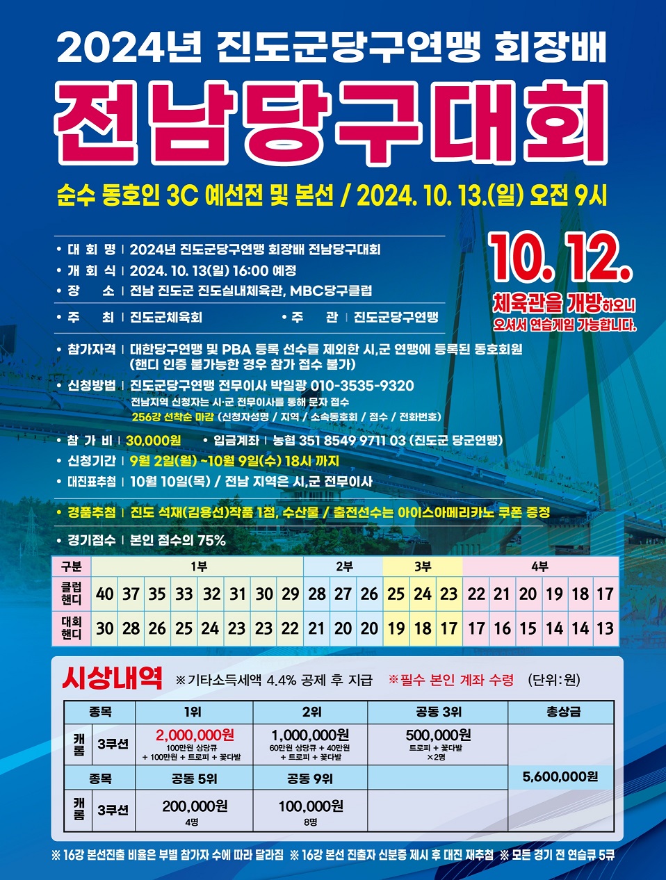 다음달 13일 진도군당구연맹 회장배 전남당구대회가 실내체육관에서 열립니다~ 추석 잘 보내시구요~~