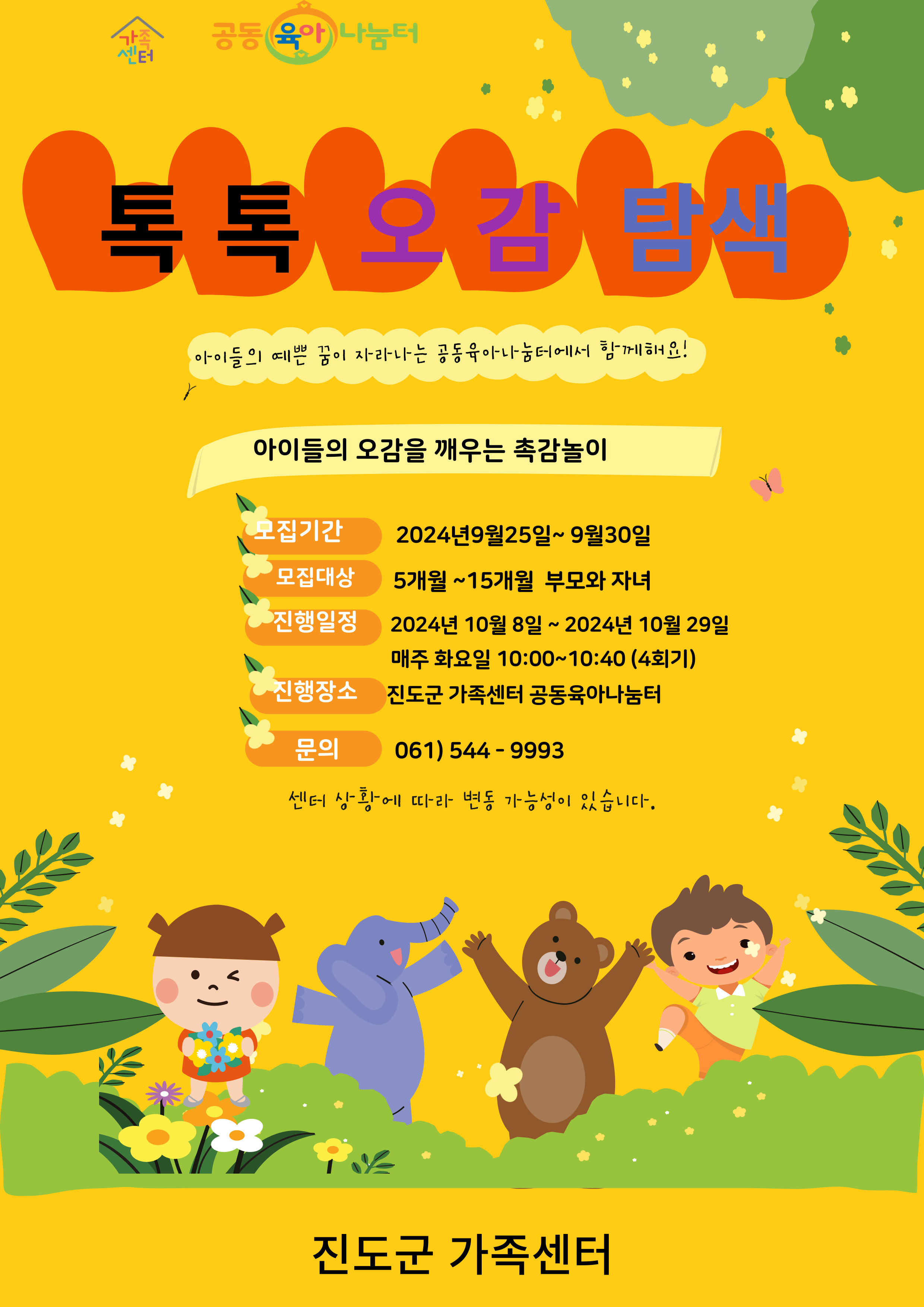 진도군 가족센터 공동육아나눔터 10월 톡톡 오감 탐색 프로그램 모집 안내