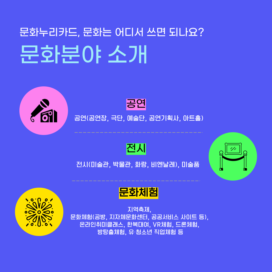 문화체험분야(전시, 공연, 문화체험, 지역축제 등)에서<b>문화누리카드</b>를 쓰시고,