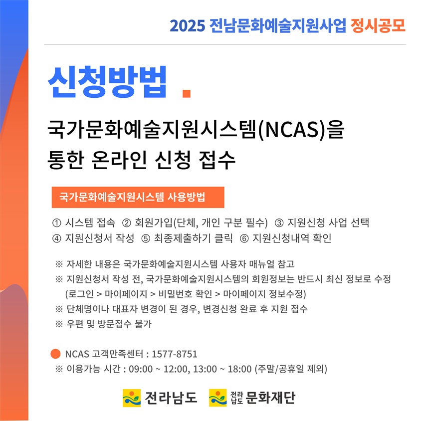□ 「2025 전남문화예술지원사업 정시공모」 안내