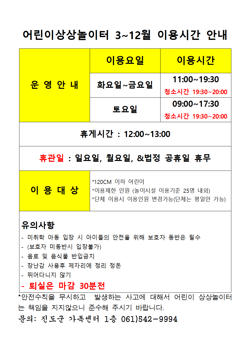 ★ 진도군가족센터내 1층 어린이상상놀이터 3~12월 이용시간 변경안내 ★