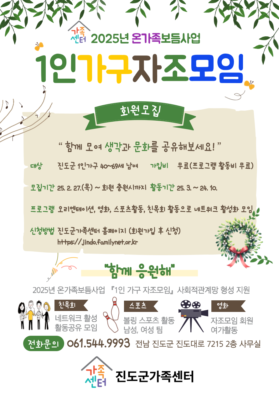 진도군가족센터『1인 가구 자조모임』회원 모집