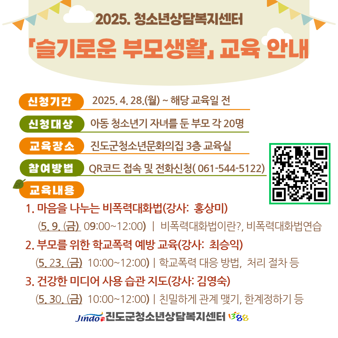 [진도군청소년상담복지센터] 부모교육 '슬기로운 부모생활' 참가자 모집