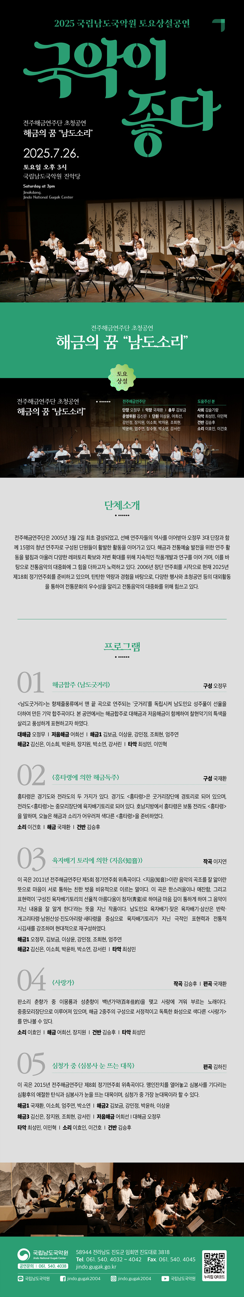 ▶ 국립남도국악원 누리집 바로가기 http://jindo.gugak.go.kr