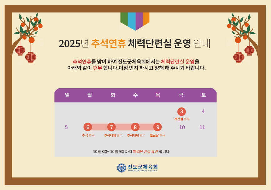 진도군체육회 체력단련실 추석 연휴 운영 안내