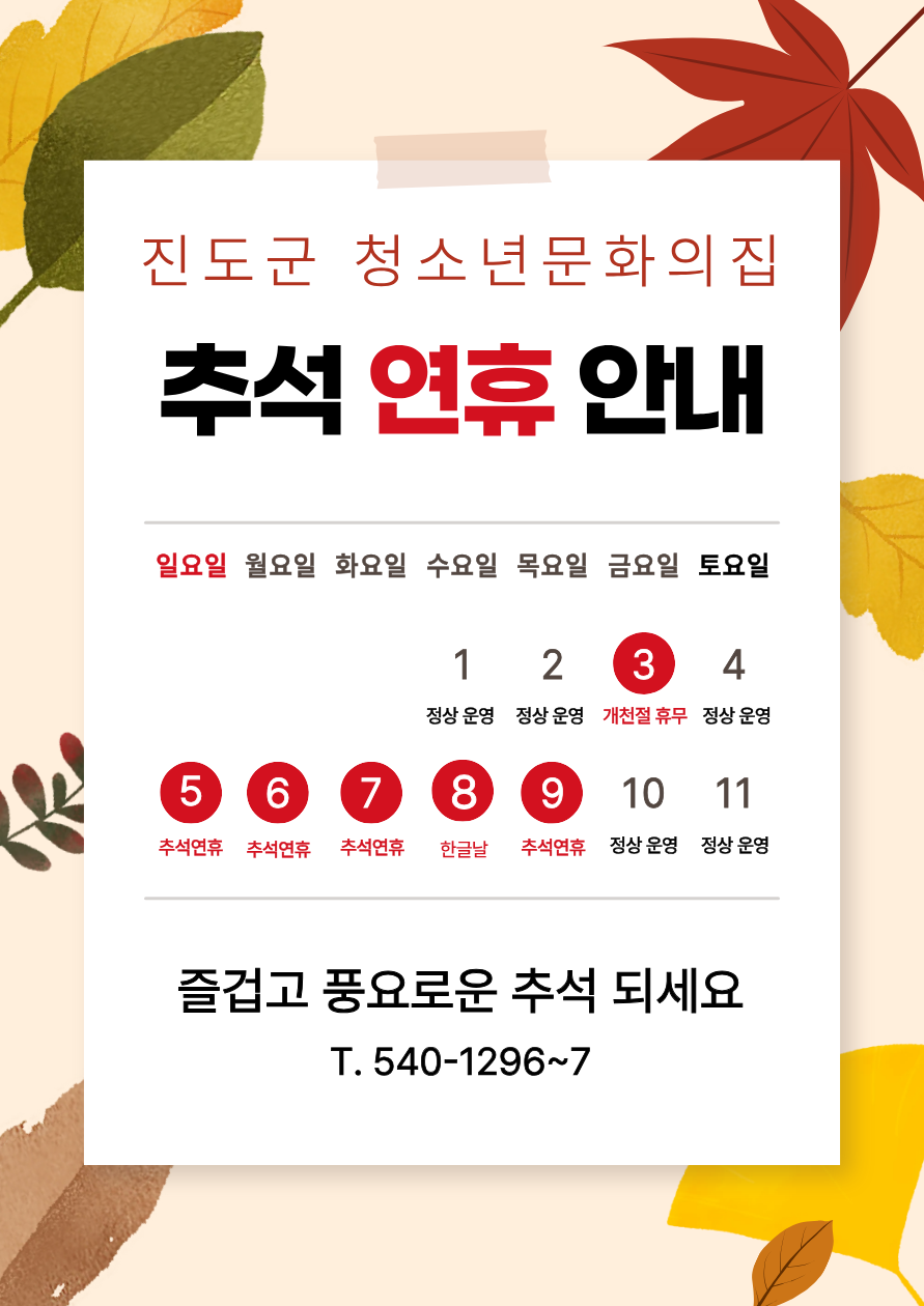 진도군 청소년문화의집 추석휴무 안내