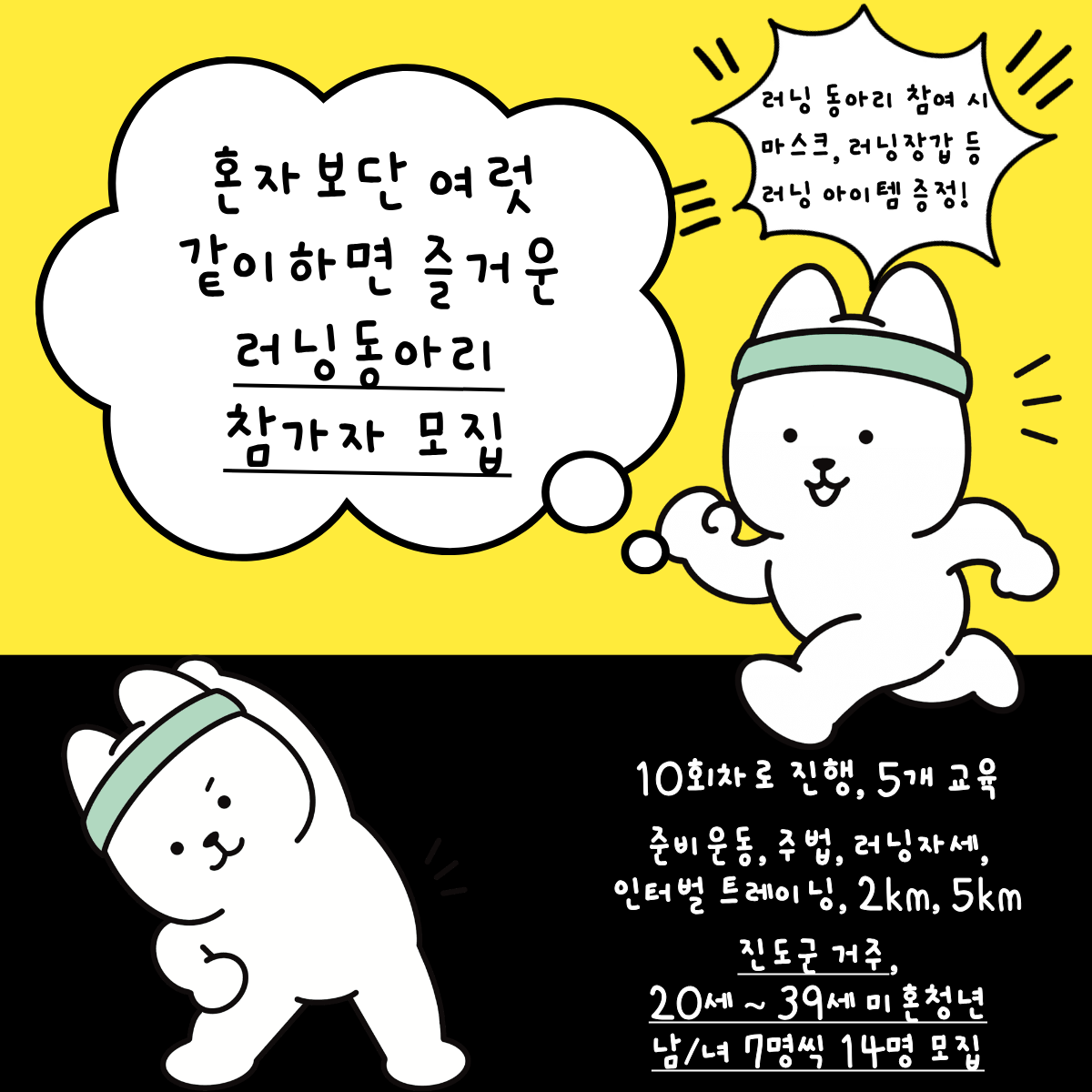 러닝동아리 : 러닝에 대한 기본 이해, 러닝주법 및 호흡법, 기초 체력 다지기, 페이스 유지 방법 익히기, 러닝 주법 등 최종 5개 과정