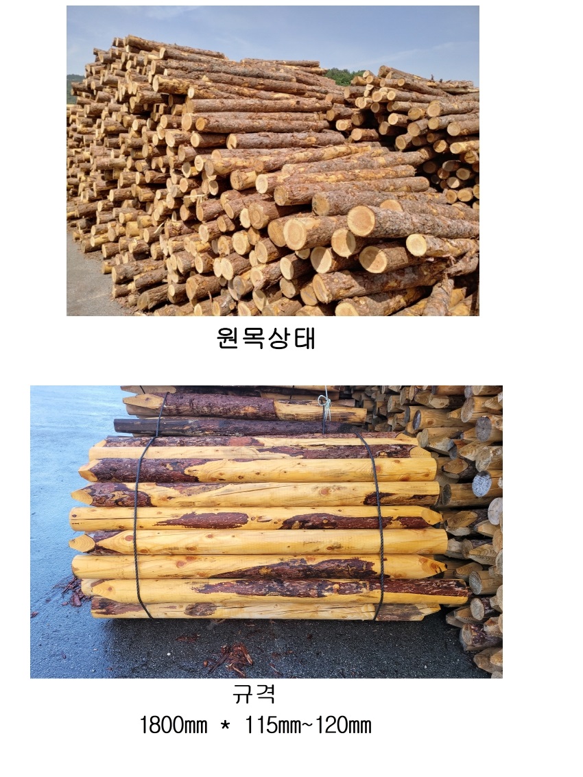 말목의 포에 들어가는 부분은 둥글게 깎여있어 하자율이 거의 없습니다. 1800㎜(전체 길이) * 115㎜~120㎜(지름) 동부목재건재종합상사 전남 고흥군 동강면 고흥로 4658 (장덕리 694번지) 061)833-6188