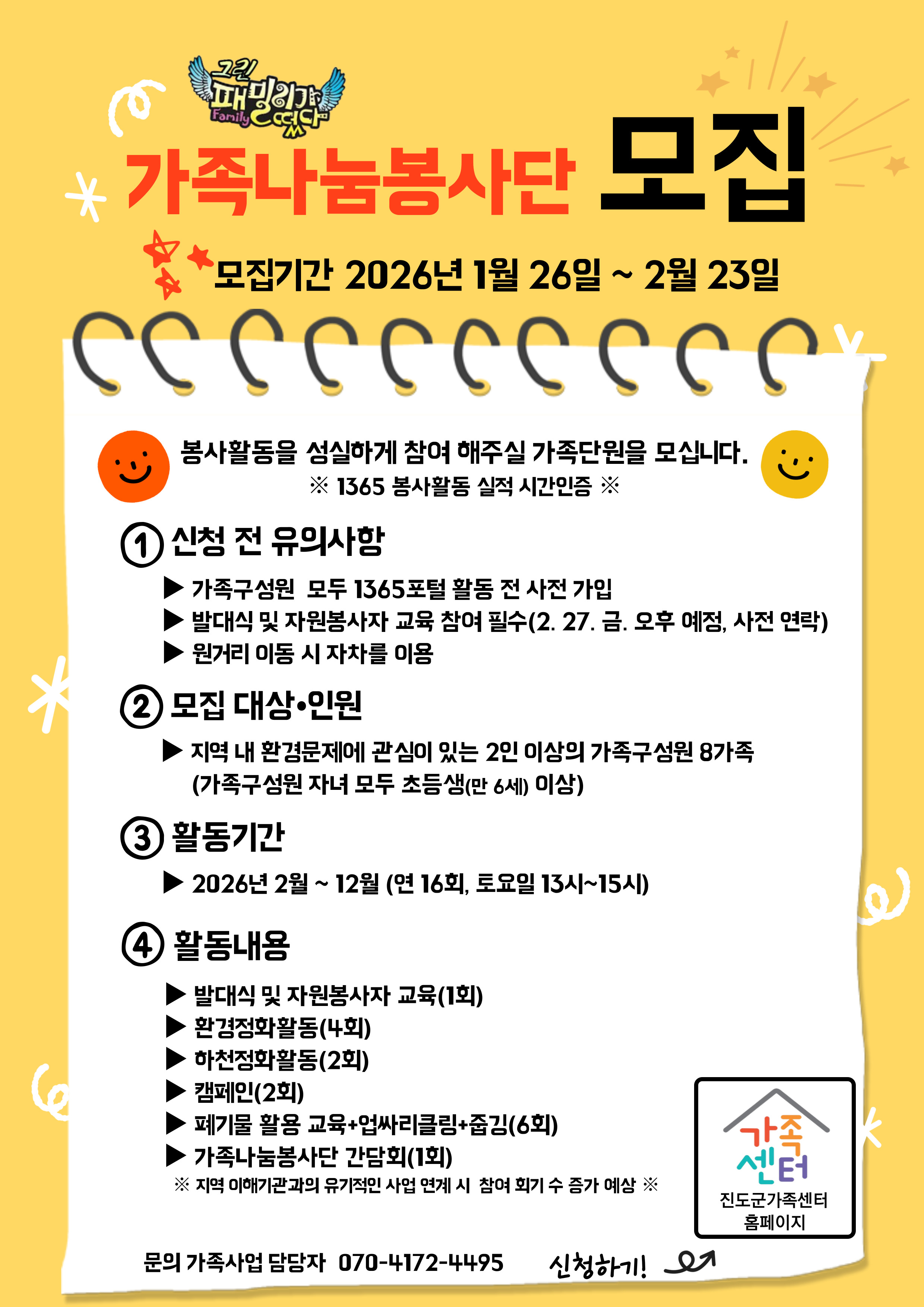 진도군가족센터 '가족나눔봉사단' 모집