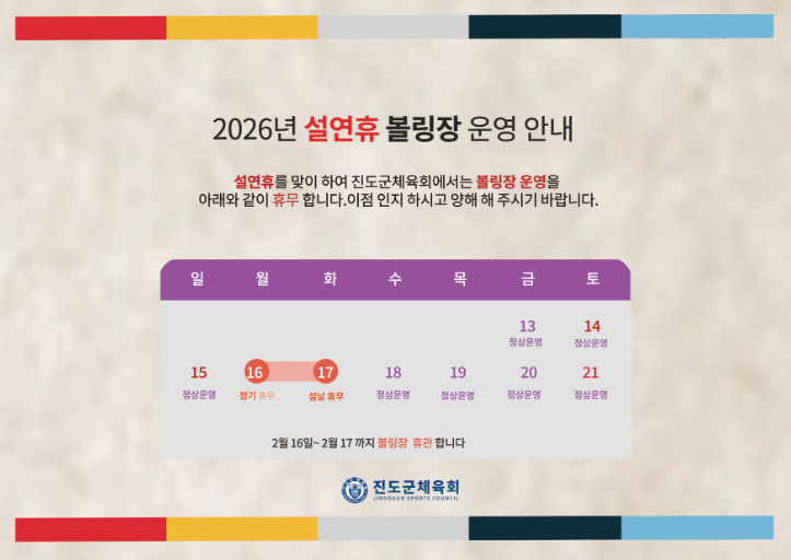 2026년 설 연휴 볼링장 운영안내