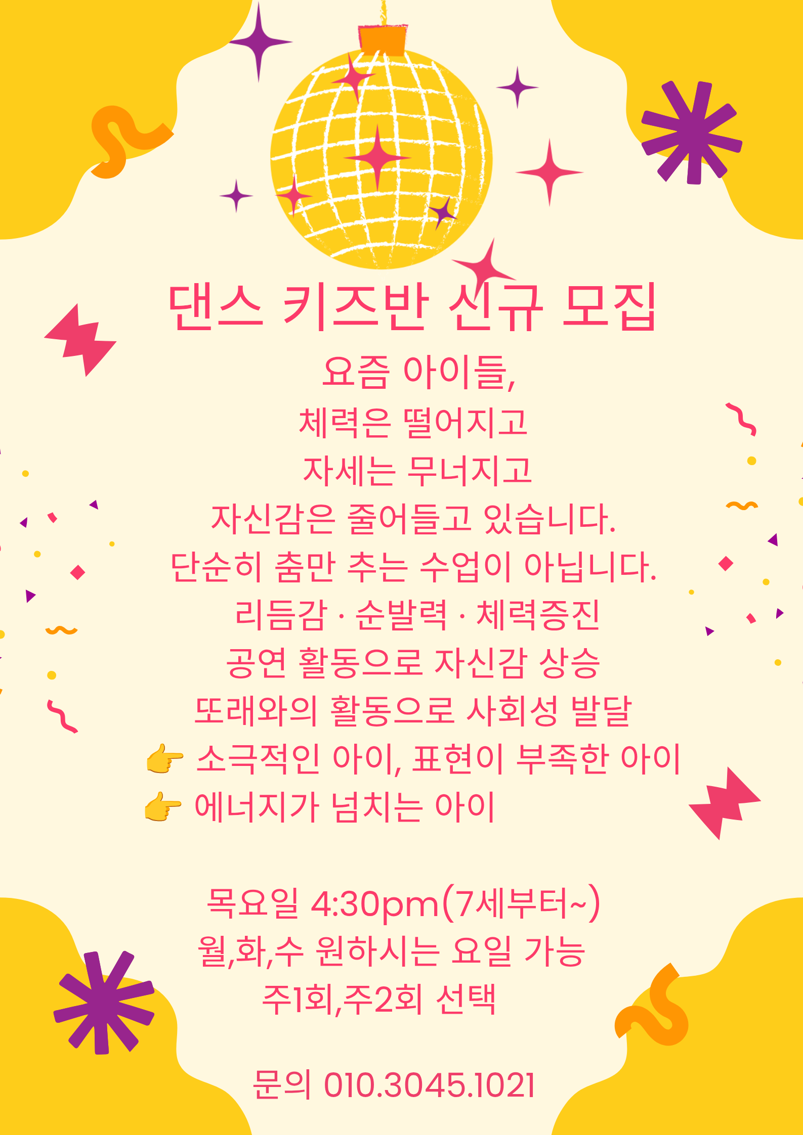 ★키즈 댄스반 7세부터~ ★키즈 플라잉반 초1부터~ 체력,자신감 표현력 up! 코어, 균형, 자세 초등 시기 필수 운동! 월,화,수 - (플라잉, 댄스 4명이상 원하시는 수업으로 오픈) 전남 바우처 카드, 진도아리랑가맹점입니다^^